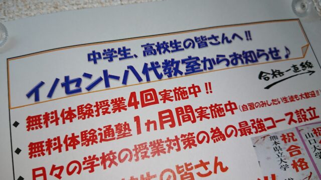 個別指導の学習塾イノセント田主丸教室の上田です。