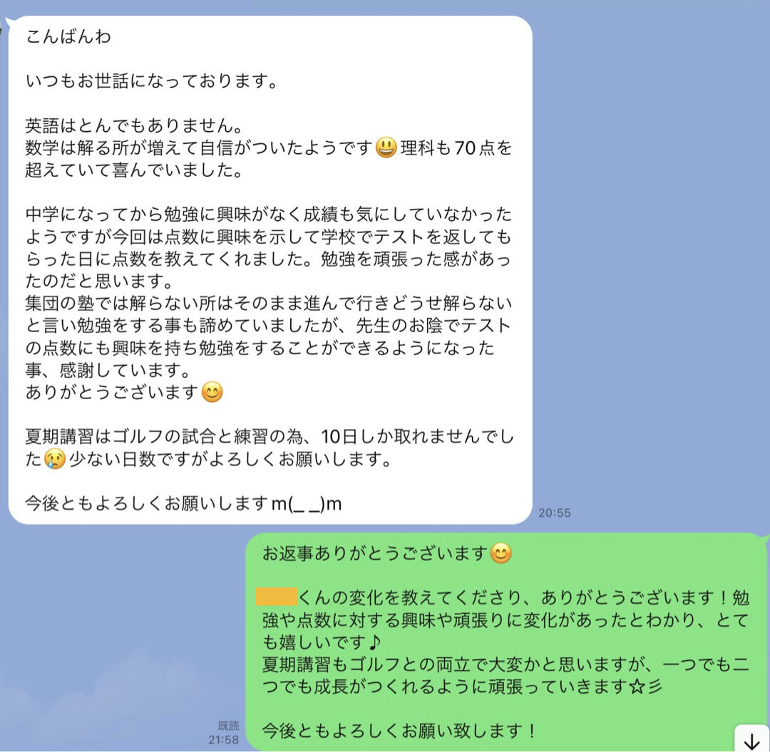 お母さんからこのようなお礼のメッセージもいただいてます。