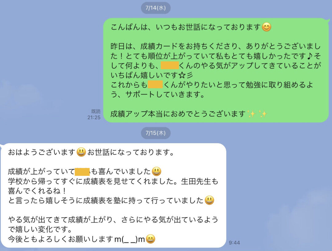 お母さんからこのようなお礼のメッセージもいただいてます。