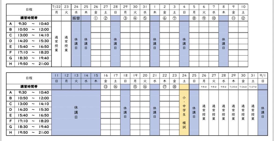 (8/24(土)は小中学生対象の模試を実施します)
