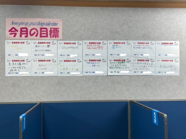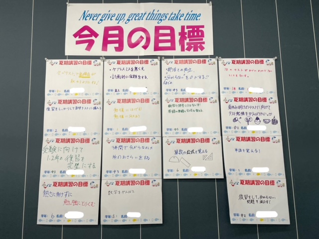 夏期講習が始まる前にみんなに夏期講習の目標を決めてもらいました。