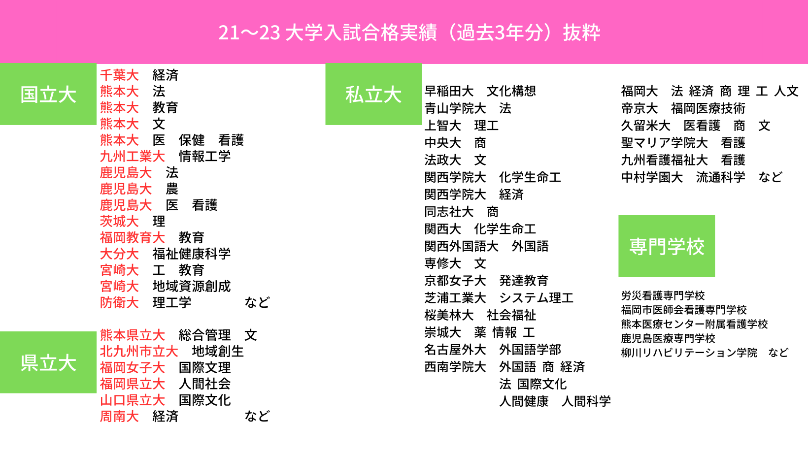 玉名高・専大玉名高・玉名女子高・大牟田高・玉名付属中・玉名中など玉名エリアの中学校または荒尾エリアの中学校
