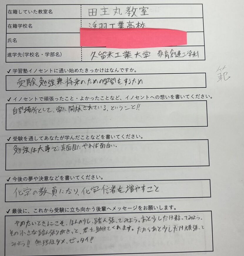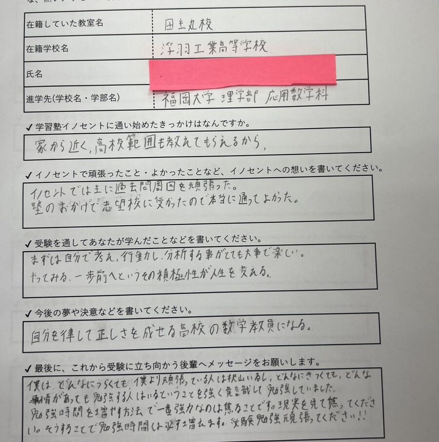 高校生のみなさん、イノセント田主丸教室では自分の夢をかなえたいみなさんを応援します。