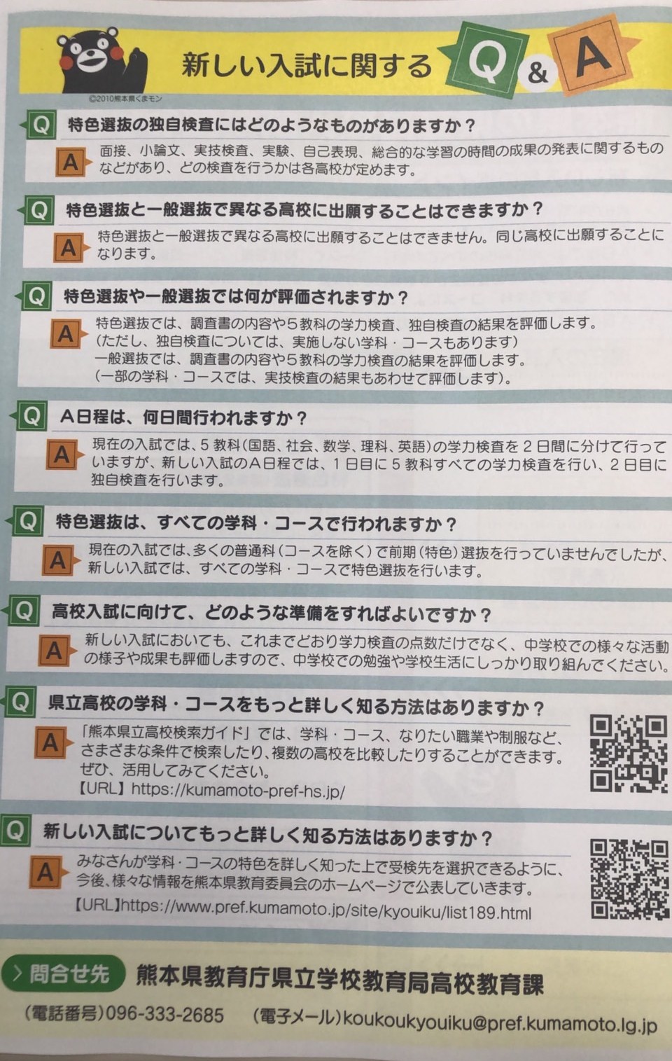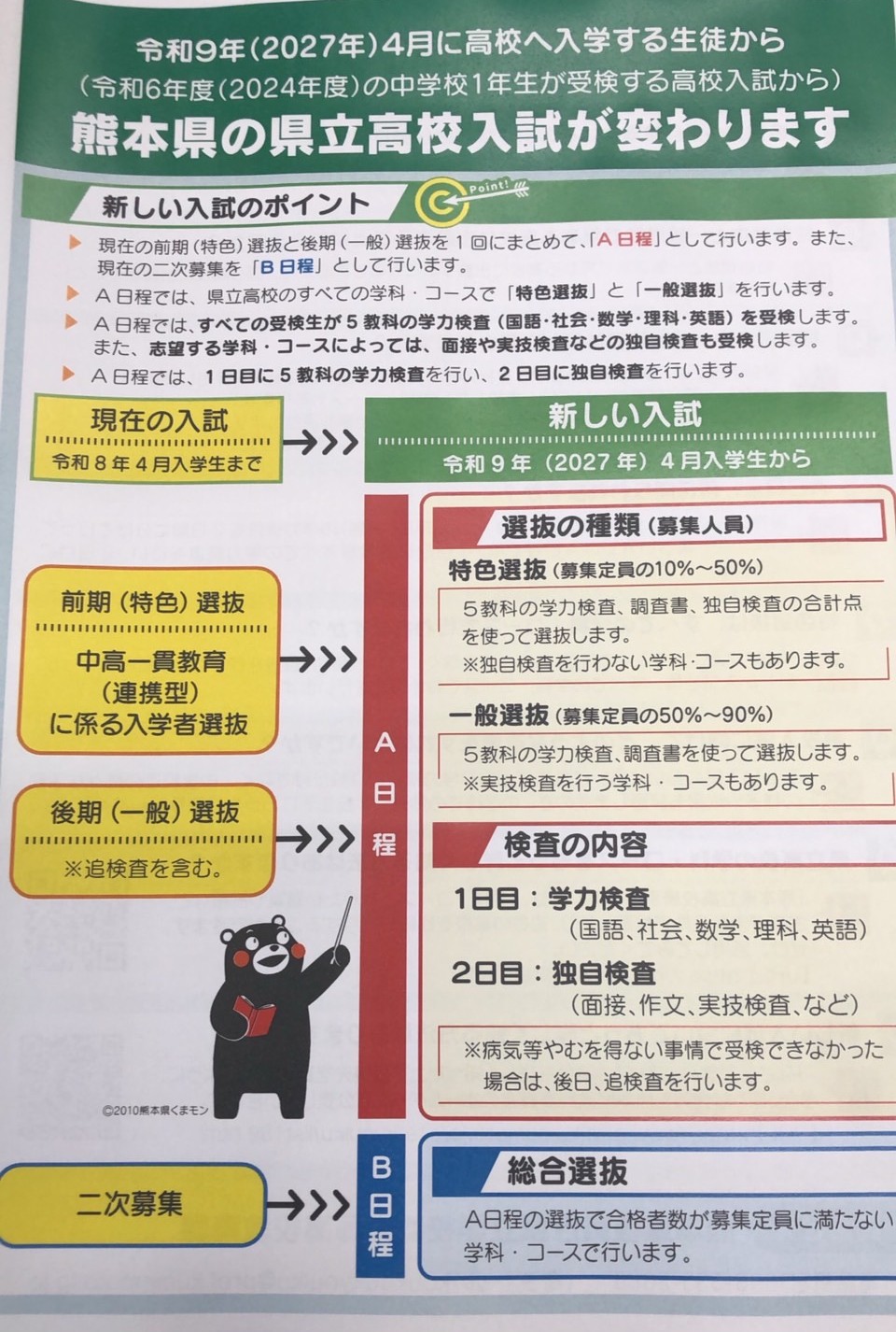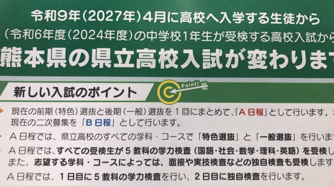 今回は中1・中2の保護者の方へ高校入試の変更点をお伝えします。