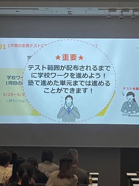 その後、私たち親世代とは大きく変わった高校入試のしくみ、受験のために今何をすべきか、そして目前に迫った定期考査に向けてどのような姿勢で取り組むのかなど、具体的なアドバイスがありましたね。どの内容も「納得!」なものばかりでした♪