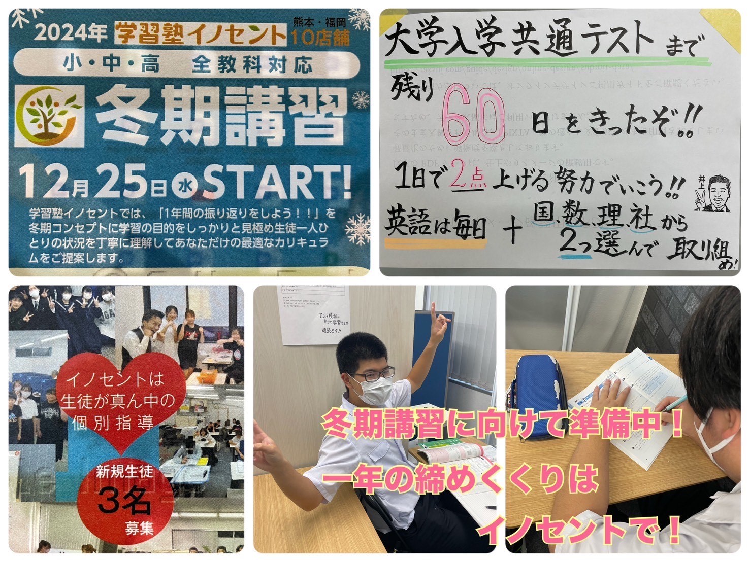 テストの結果はどうでしたか?イノセントでは、「1年間の振り返りをしよう!」をコンセプトに8日間の冬期講習を展開します。