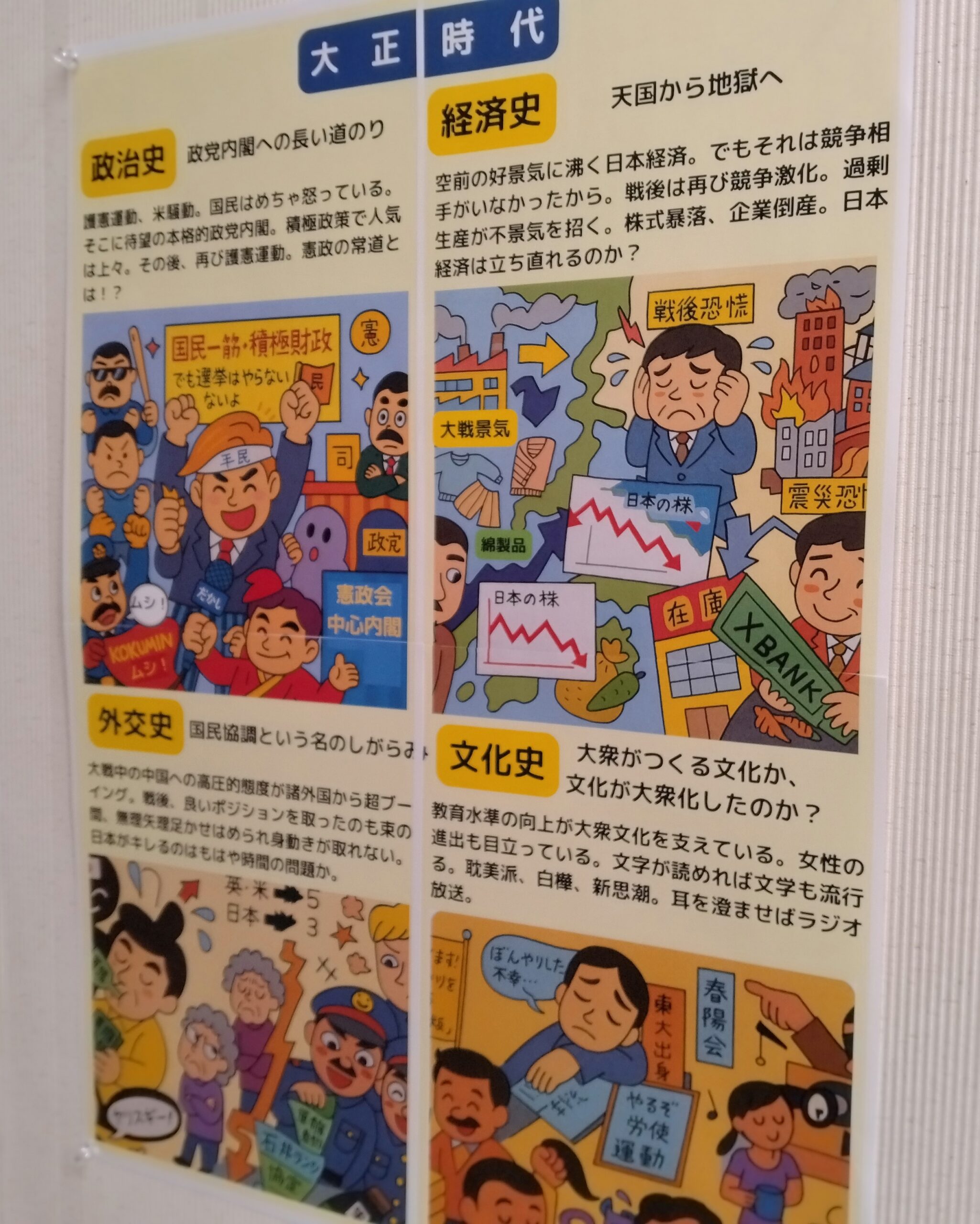 階段を上りながら歴史を覚えることができる掲示物があれば良いな~という、つぶやきを社会担当の講師が察知してくれまして、出来上がったのが・・・これ⇩