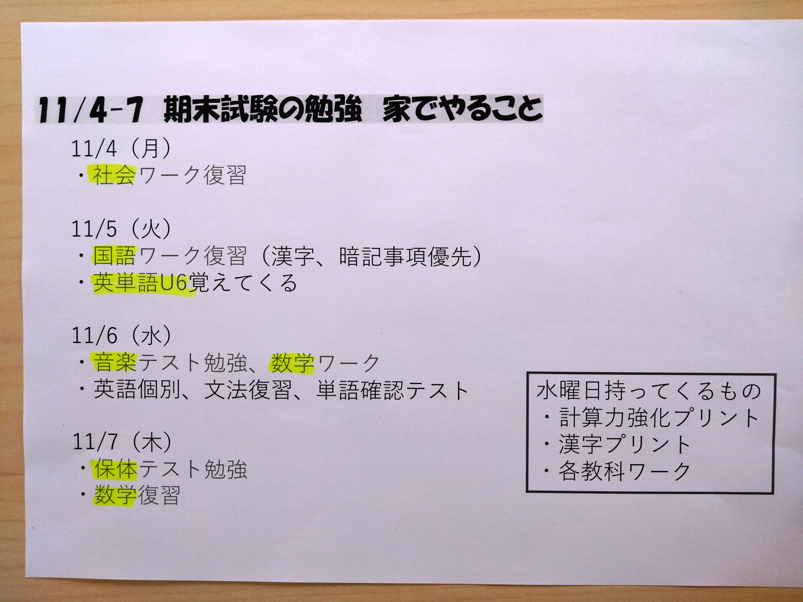 田島教室のメインの中学校である友泉中では、11/7-8で期末考査が行われます。