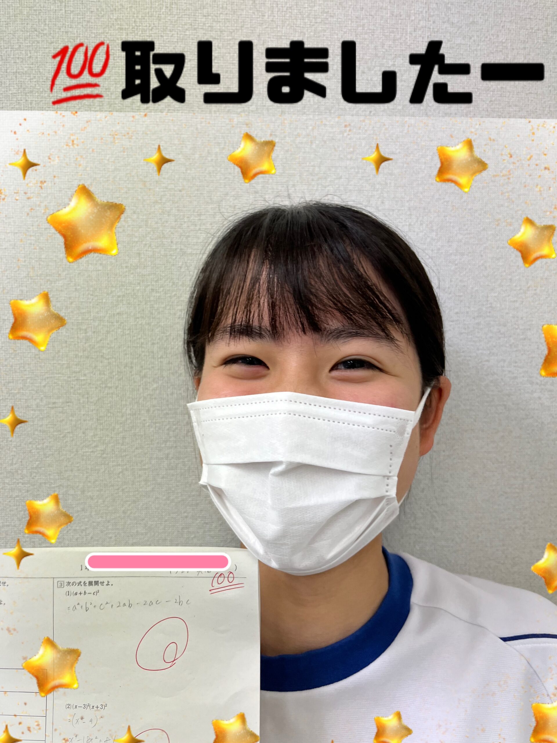 初めての中間テストで数学100点をとることができました(^^♪