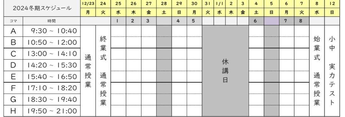 以前のブログでも紹介しましたが、冬期講習はこれまでの総復習を実施します。
