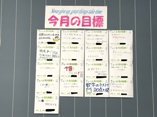 合志教室では毎月目標を立て、それを見えるところに掲示しています。